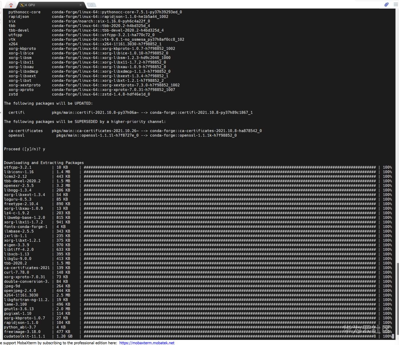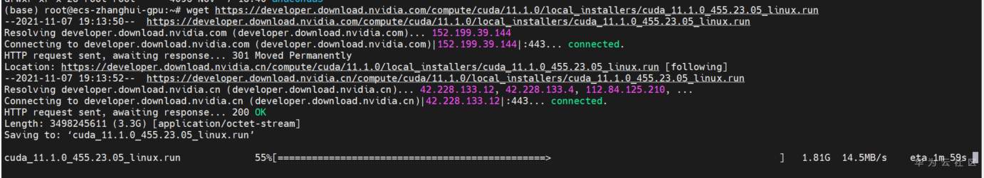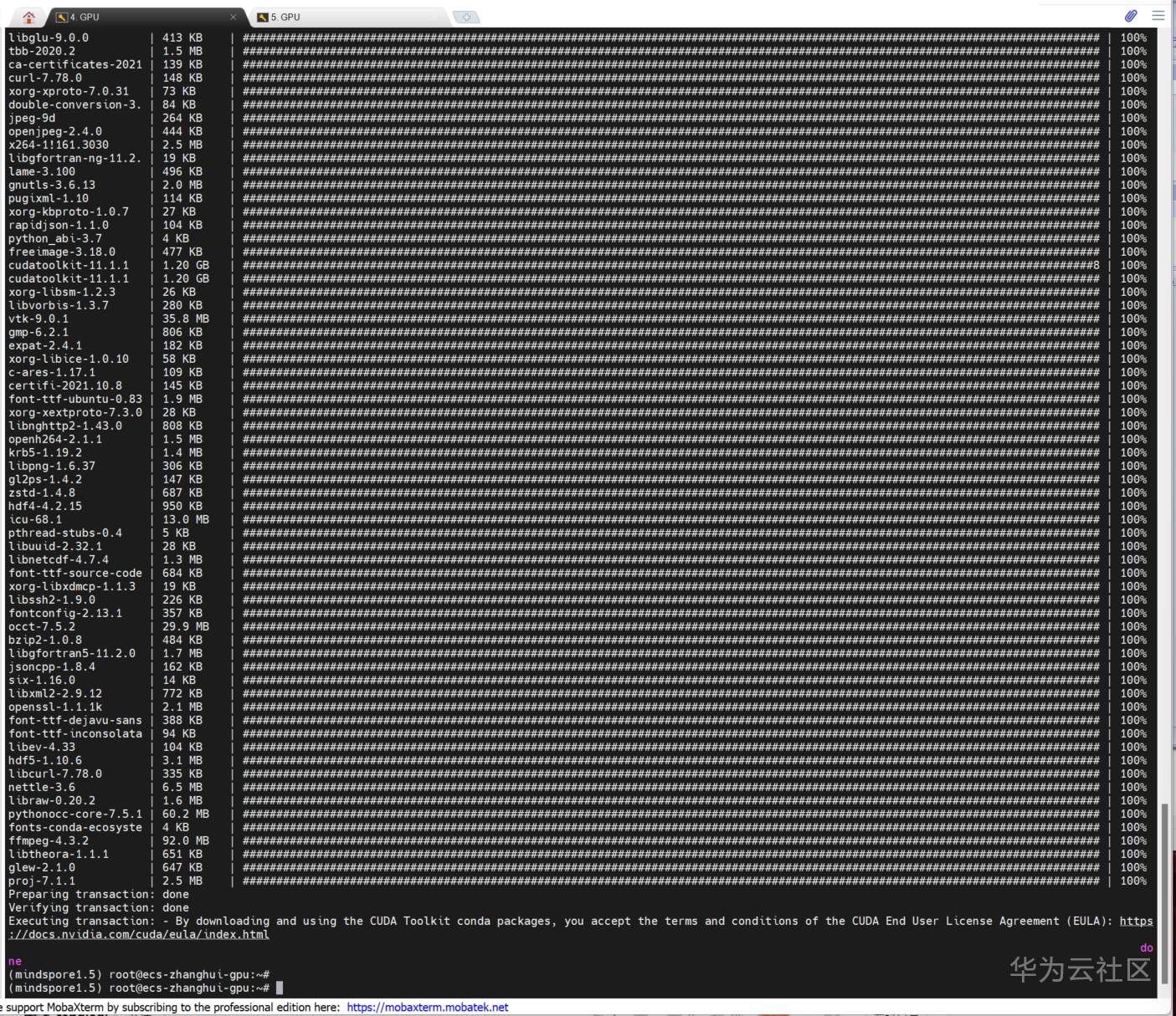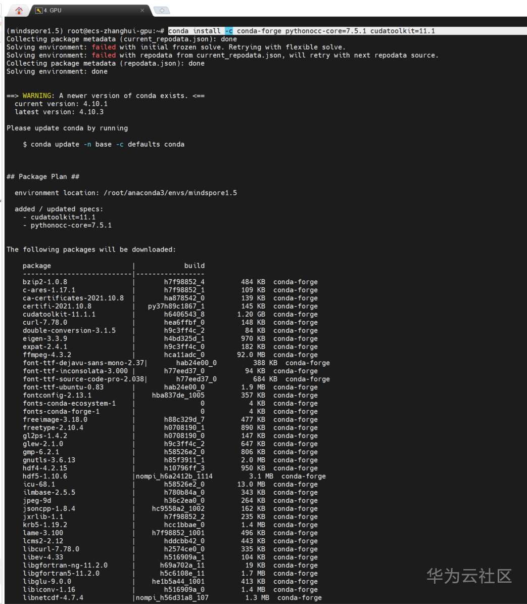 conda环境的CUDA 11.1的包比较大(1.2G),要耐心等待下载。
