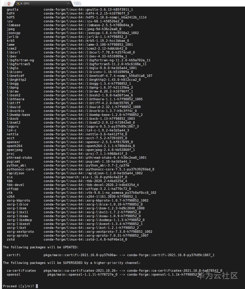 conda install -c conda-forge pythonocc-core=7.5.1 cudatoolkit=11.1