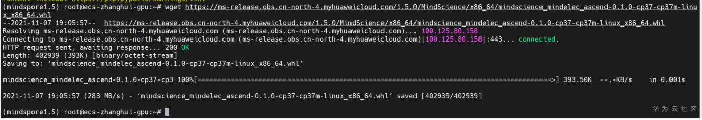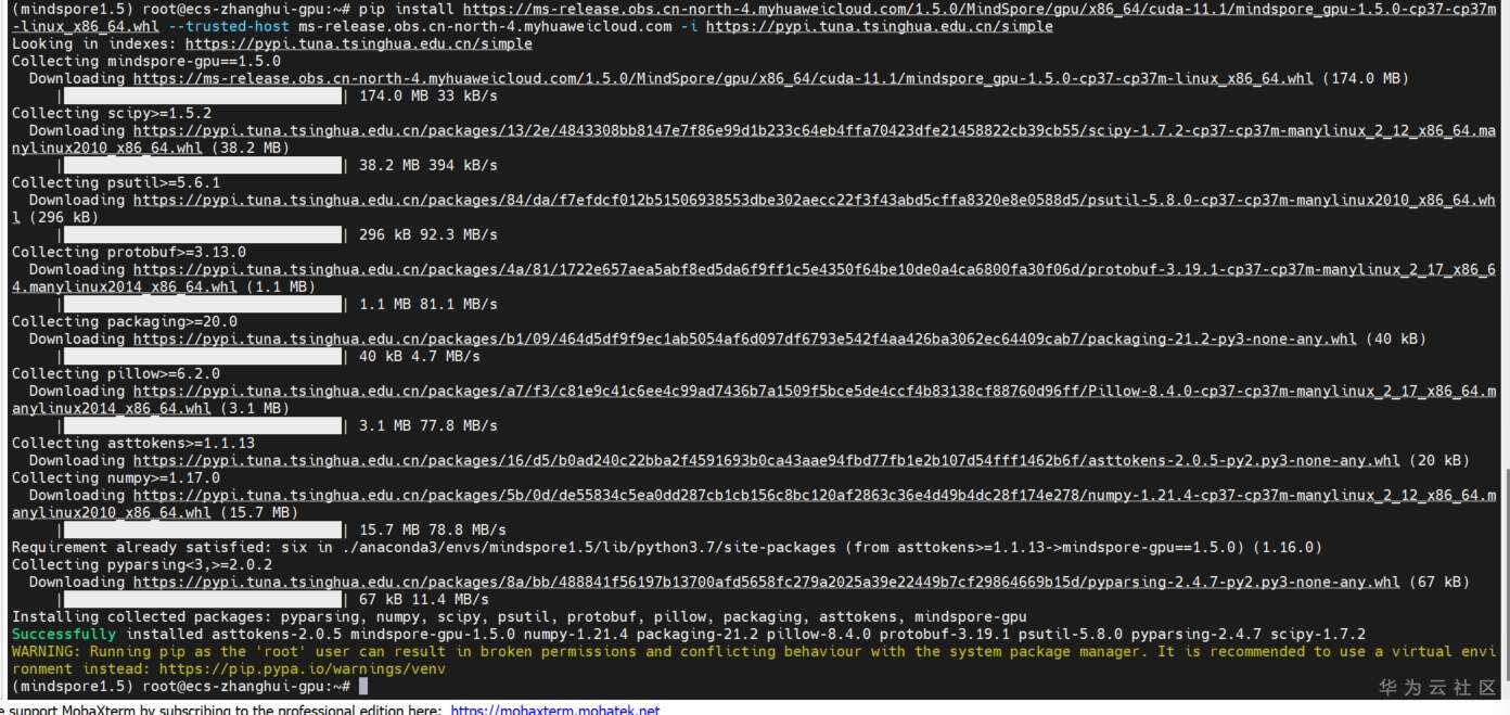 pip install https://ms-release.obs.cn-north-4.myhuaweicloud.com/1.5.0/MindSpore/gpu/x86_64/cuda-11.1/mindspore_gpu-1.5.0-cp37-cp37m-linux_x86_64.whl --trusted-host ms-release.obs.cn-north-4.myhuaweicloud.com -i https://pypi.tuna.tsinghua.edu.cn/simple
