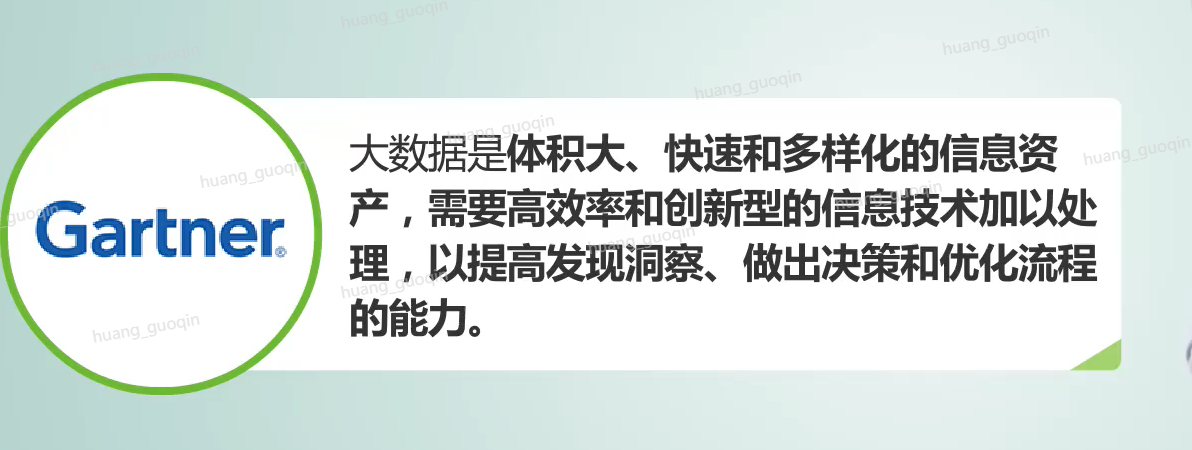 其实呢到目前为止,大数据还没有一个明确的、统一的定义,不同组织、机构对大数据有着不同的描述。