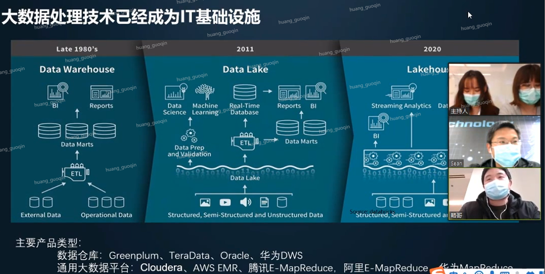 现在我们基本上可以看到整个大在整个IT基础设施里面呢,大数据已经成为了一种基础的IT基础设施了。这个不仅从计算、存储网络可能成为it基础设施,大数据技术,包括我们所我们认为的数据仓库这种技术在各行各业应该都成成为了我们的这个ICT的基础设施。