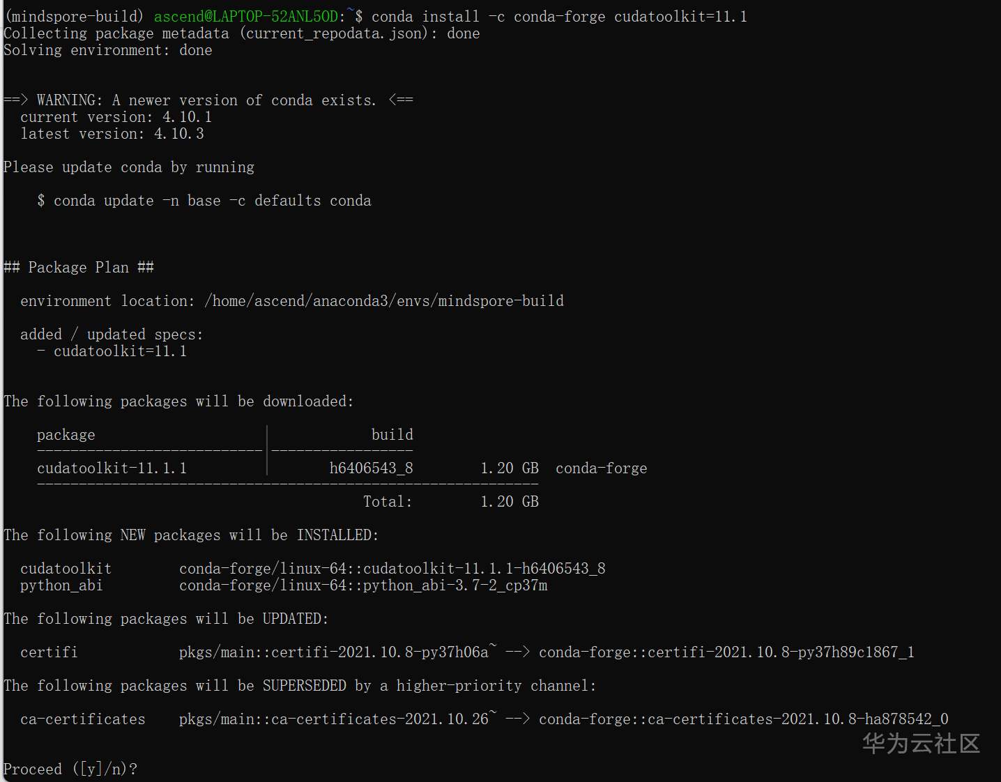 参考 https://bbs.huaweicloud.cn/blogs/308832 的方式,conda安装: