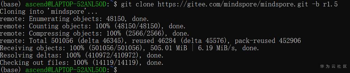 git clone https://gitee.com/mindspore/mindspore.git -b r1.5