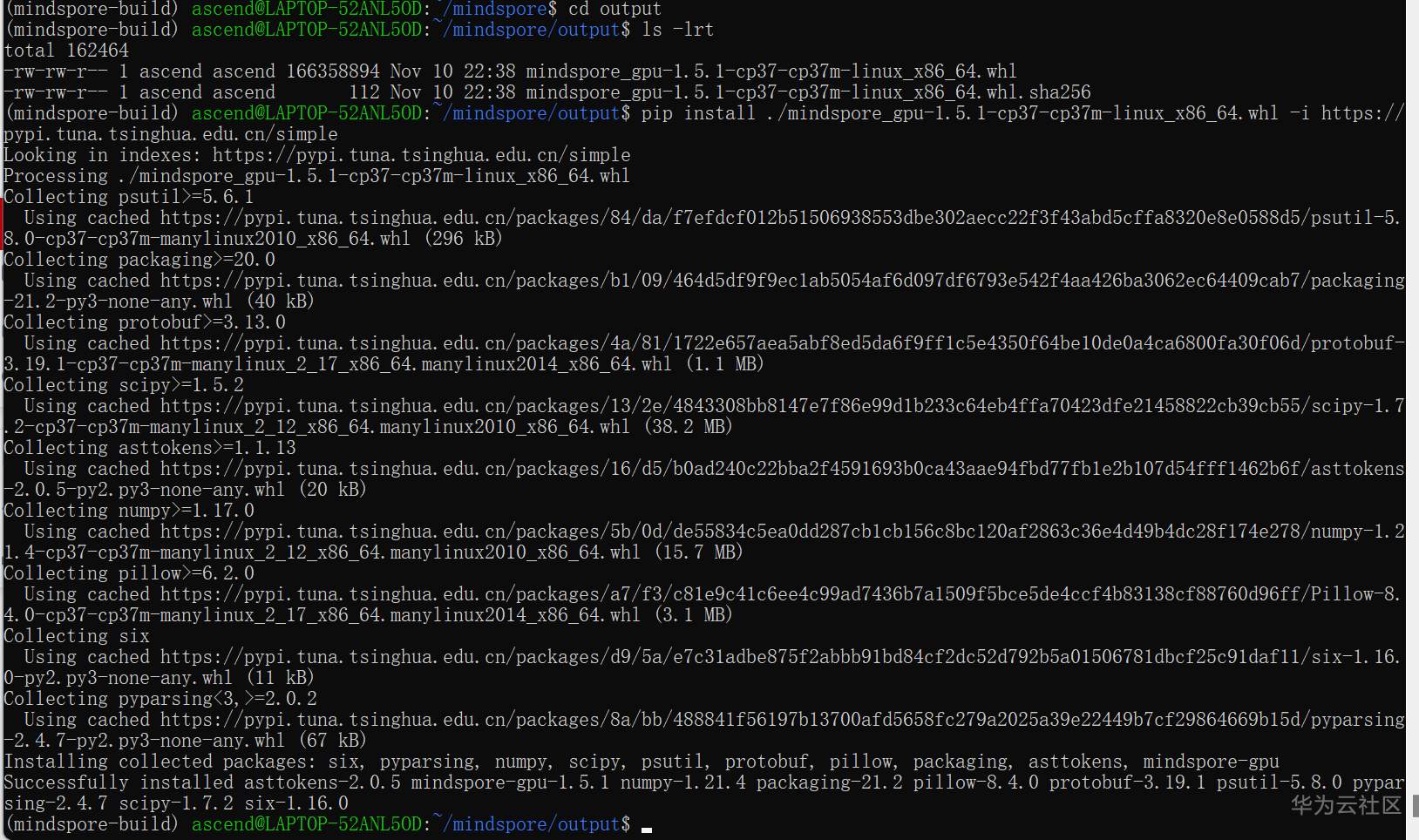 pip install ./mindspore_gpu-1.5.1-cp37-cp37m-linux_x86_64.whl -i https://pypi.tuna.tsinghua.edu.cn/simple