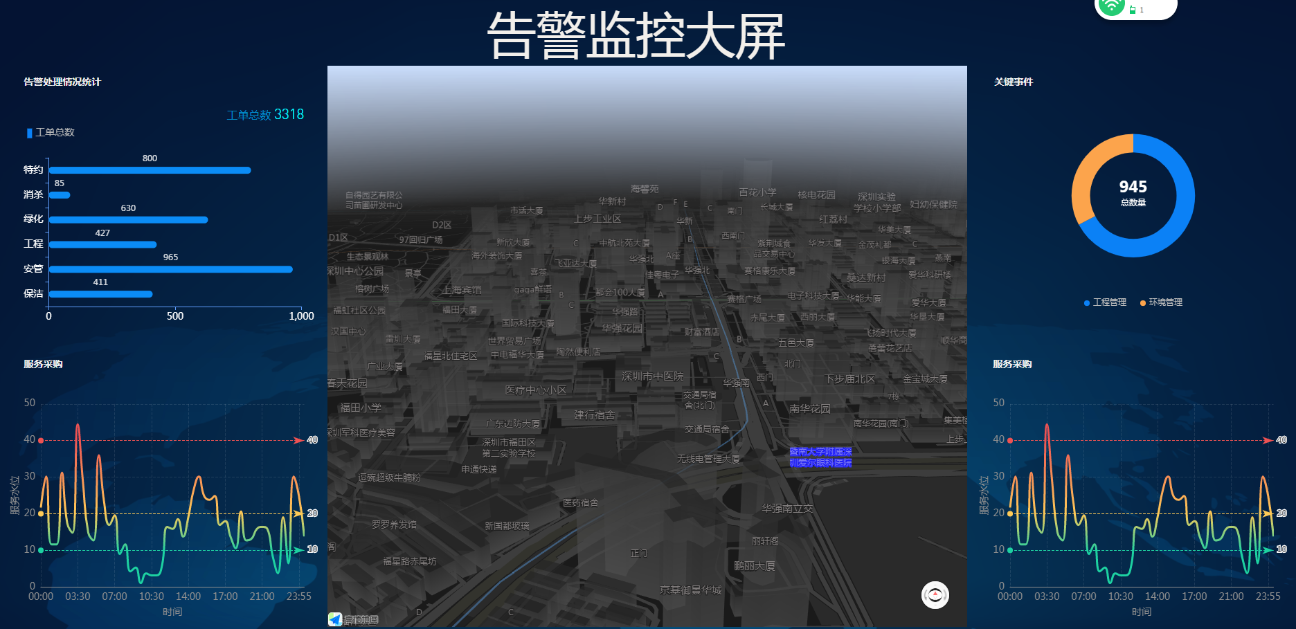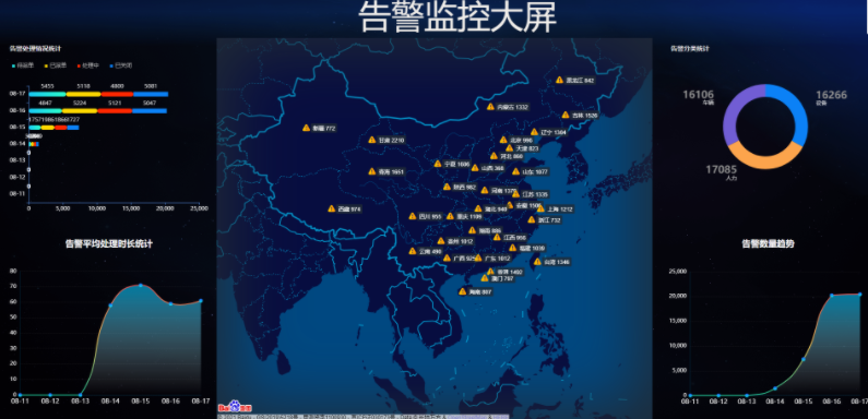 告警监控大屏应用场景:产品经理、运营人员需要使用大屏来查看综合指标-全国范围的告警监控。