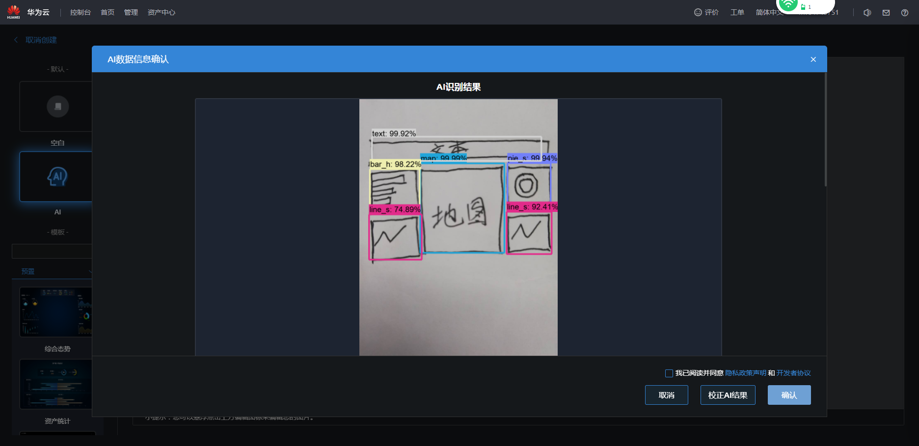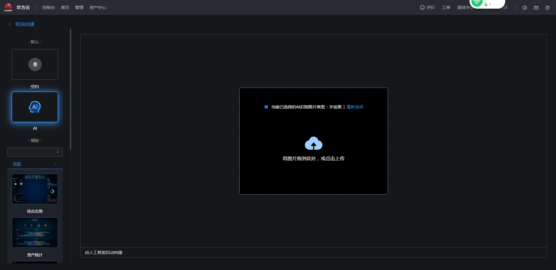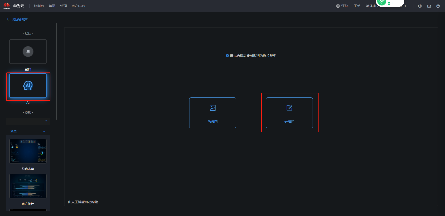 - 单击“AI”,选择“手绘图”。使用AI识别功能前,您需要提前配置存储。
