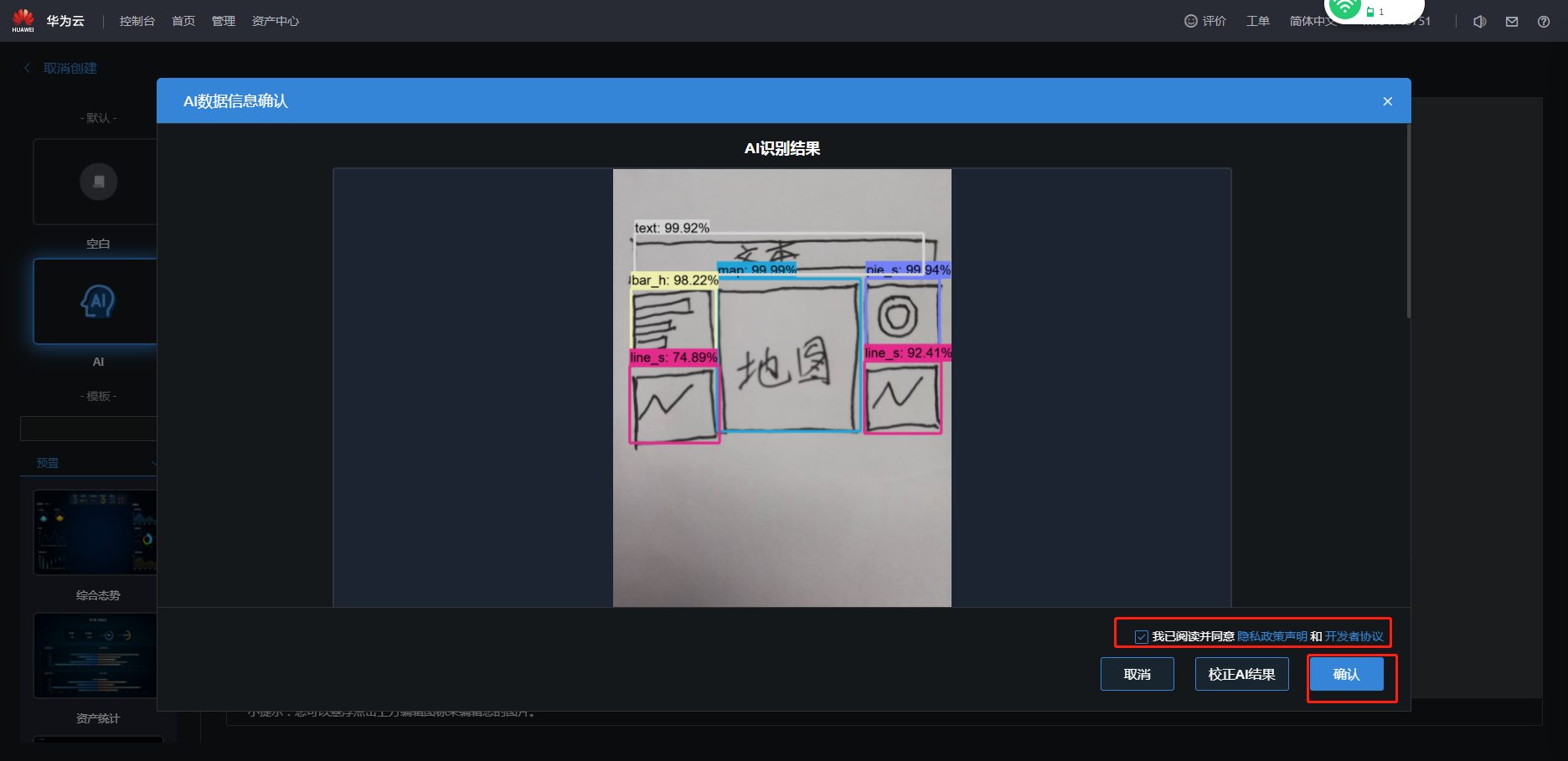 - 不用校正AI结果,单击“确认”。