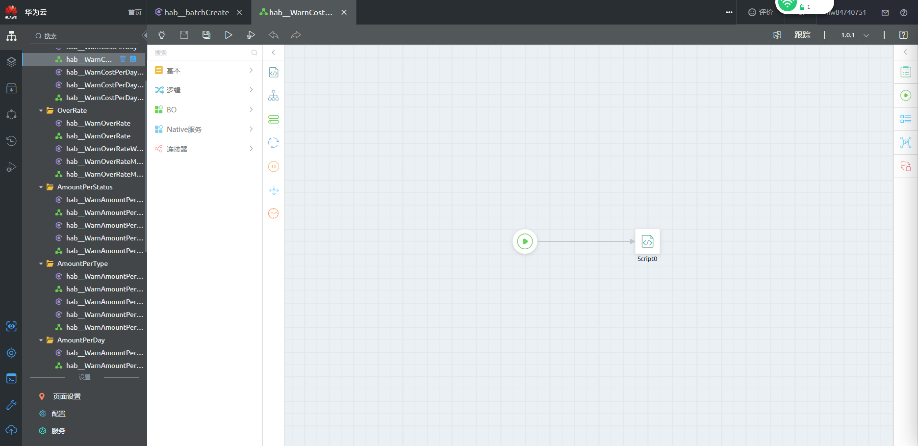 - 运行mock应用中“Logic > Data”文件夹下的“hab_bachCreate”脚本,不用输入入参,用于批量制造告警数据。