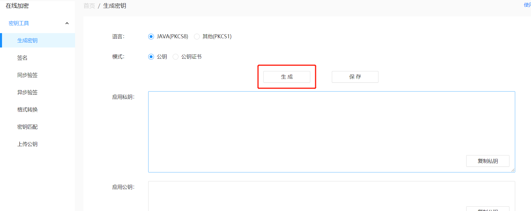 11、 点击生成秘钥即可