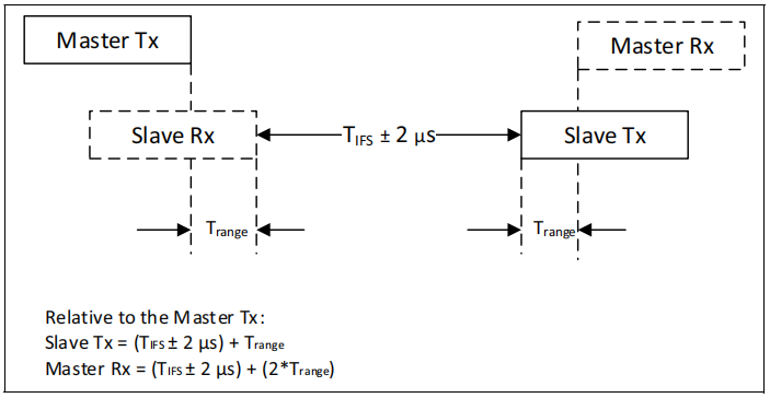 当两个设备间隔超过几米时,与第4.2.1节中定义的主动时钟精度相比,在它们之间传播的信号所花费的时间将是显著的。当设备侦听可能达D米的包时,它应该在该包传输的名义最新时间(例如T_IFS+2µs)后侦听额外的2D*4ns。