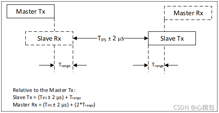 注意:这意味着具有500ppm主睡眠时钟精度的2秒连接间隔需要拓宽1ms+16µs,再加上奴隶在连接间隔期间实际使用的时钟的精度。