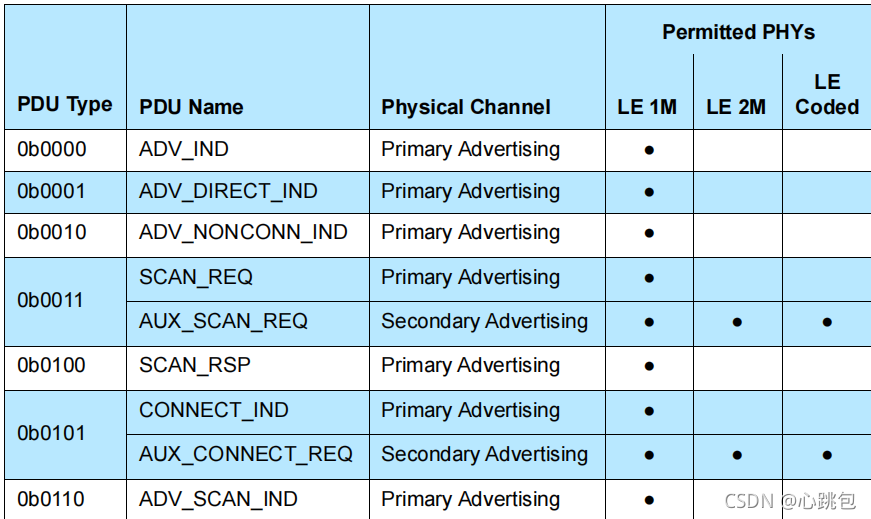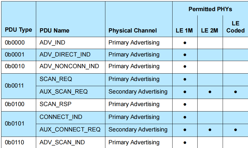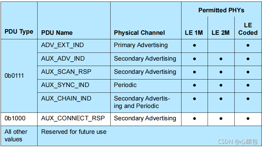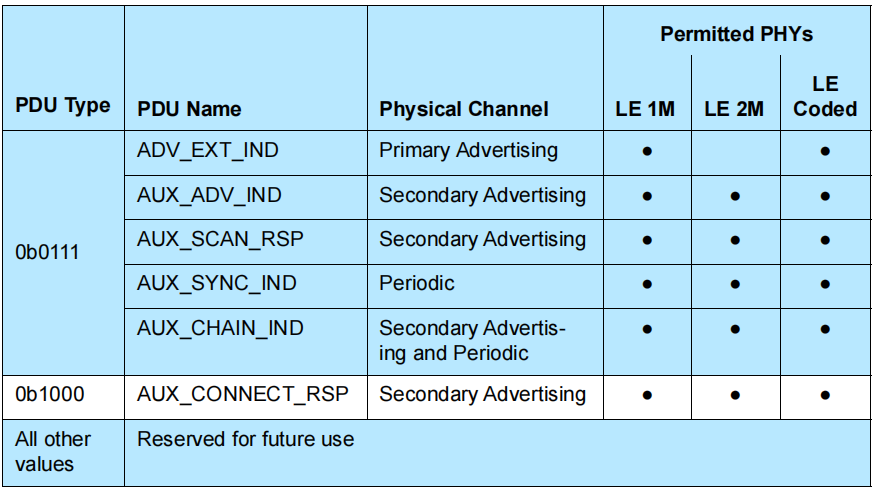 注意:尽管有名称,广告物理通道PDU也在周期性物理通道上使用。