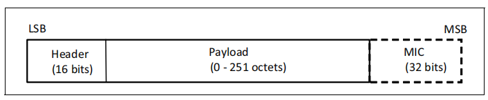 CRC之后是一个可选的常音扩展,它由一个不断调制的一系列未白度的1s组成。常音扩展不包含在CRC或MIC计算中。常音扩展字段不应出现在等时物理信道上发送的数据包中。常音扩展将在第2.5节中进一步讨论。 |