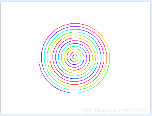 绘制一个颜色变化的圆形螺旋,画螺旋与画圆的方法类似