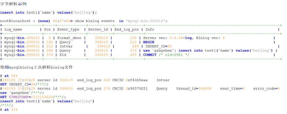 注意:因为在5.6.34中并不会产生Anonymous_gtid_log_event,所以以下内容是基于5.7.19版本解析