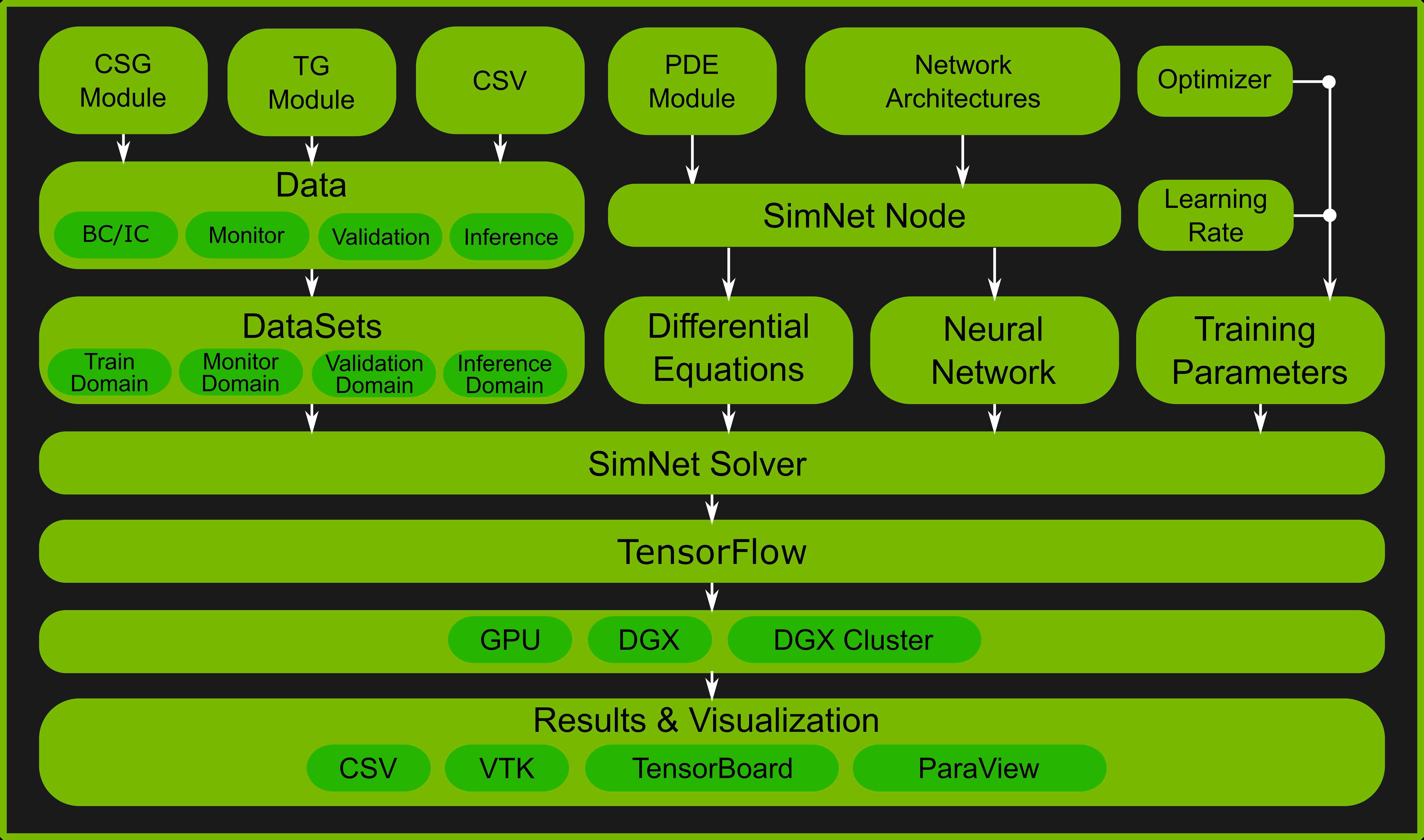 NVIDIA SimNet 是一个物理信息神经网络( PINN )工具包,面向工程师、科学家、学生和研究人员,他们正在开始使用人工智能驱动的物理模拟。您可能还希望利用一个强大的现有框架来实现您的领域知识,并通过实际应用解决复杂的非线性物理问题。