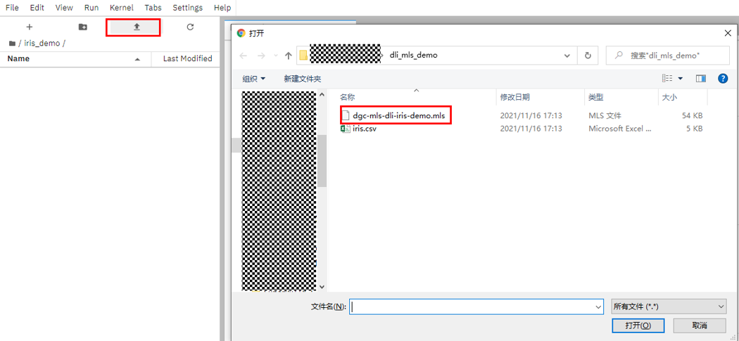 上传dgc-mls-dli-iris-demo.mls到notebook