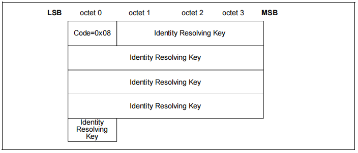 - IdKey是一个1位字段,它被设置为1,以指示设备应使用身份信息命令分发IRK,然后使用其公共设备或使用身份地址信息的静态随机地址。