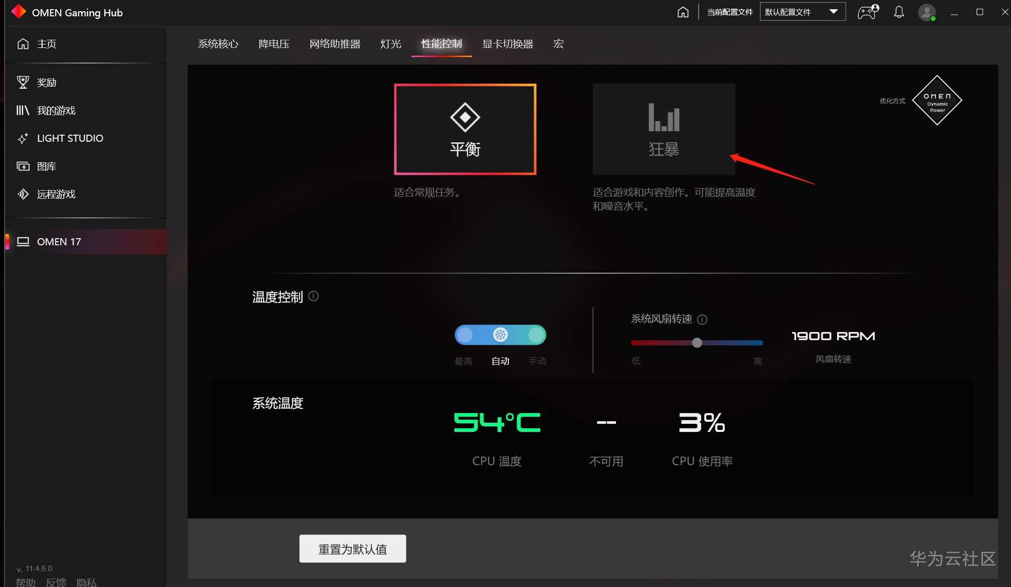 张小白又看到HP设置中有个模式选择——平衡模式和狂暴模式: