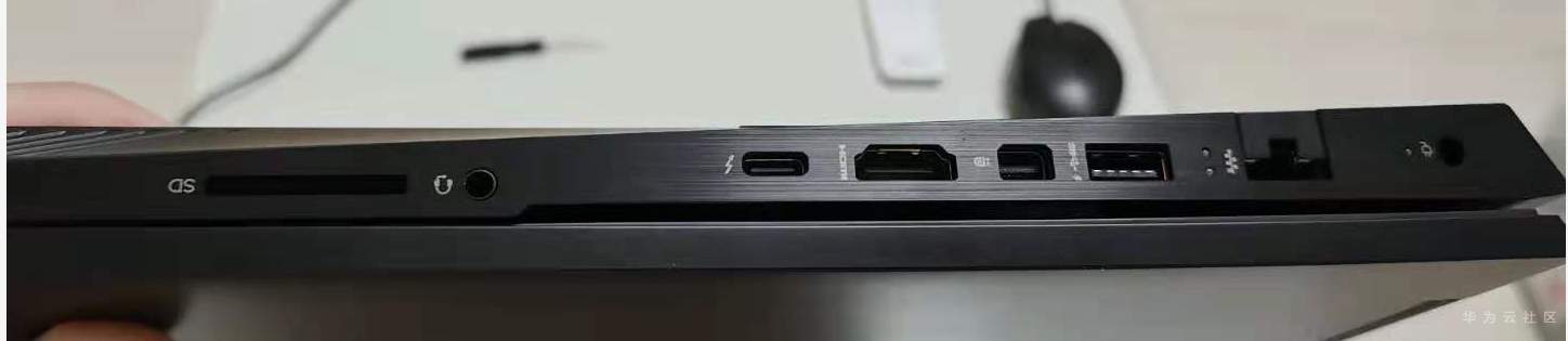 另一侧:有电源口,网线口,USB,MiniDP,HDMI,Type-C(雷电),耳机,SD卡槽等等(从右往左看)。