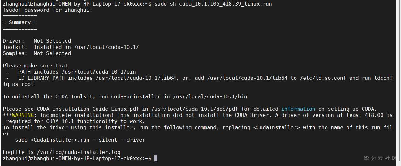sudo sh cuda_10.1.105_418.39_linux.run
