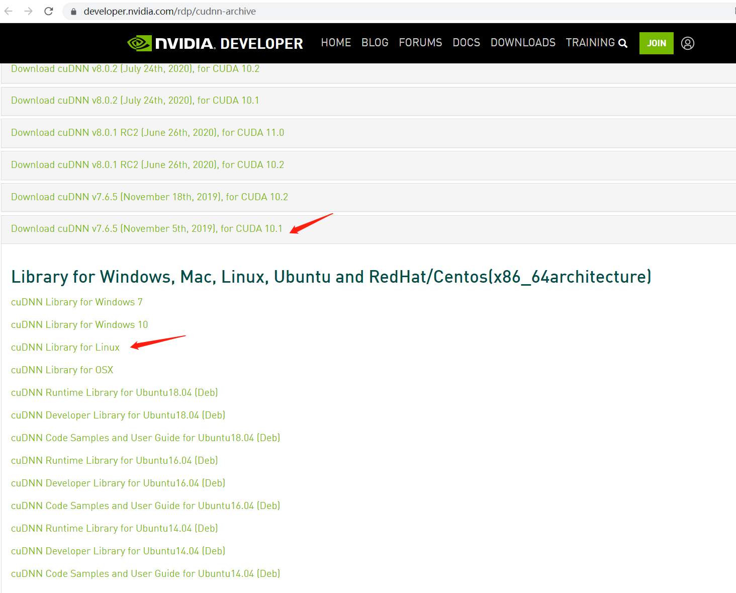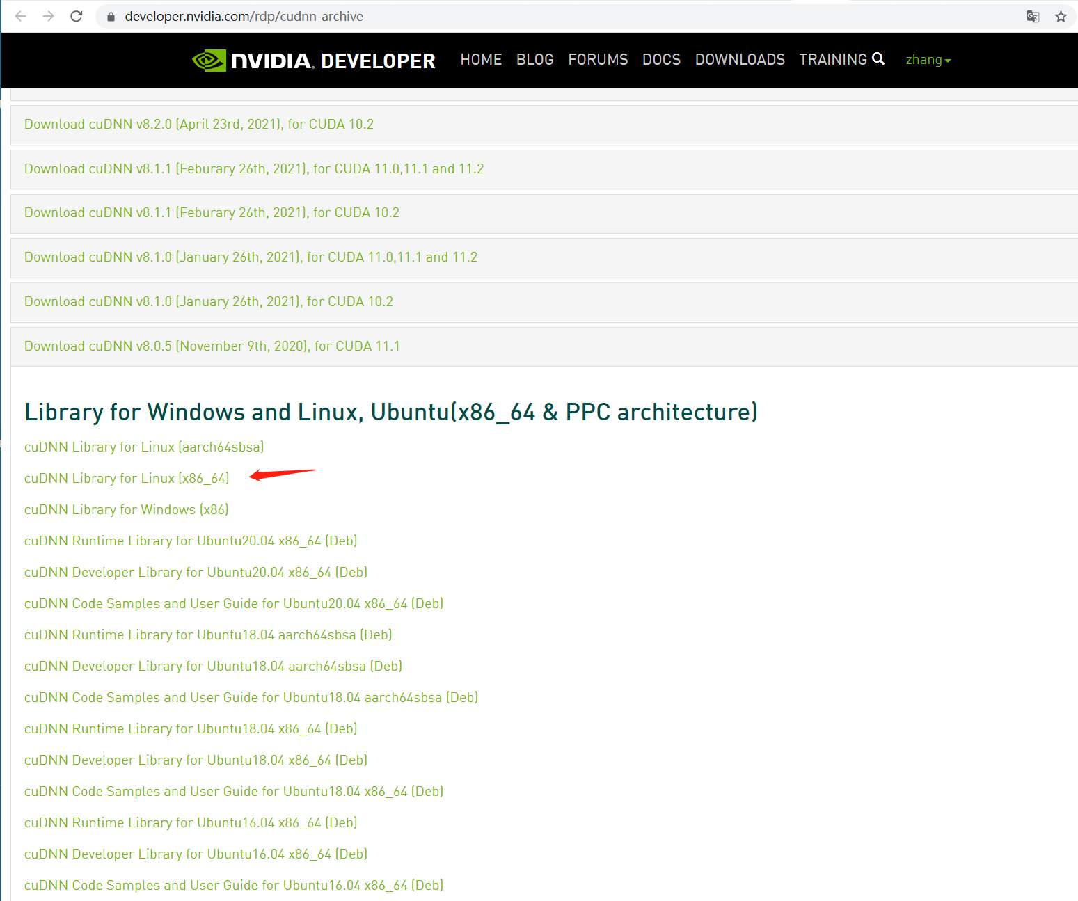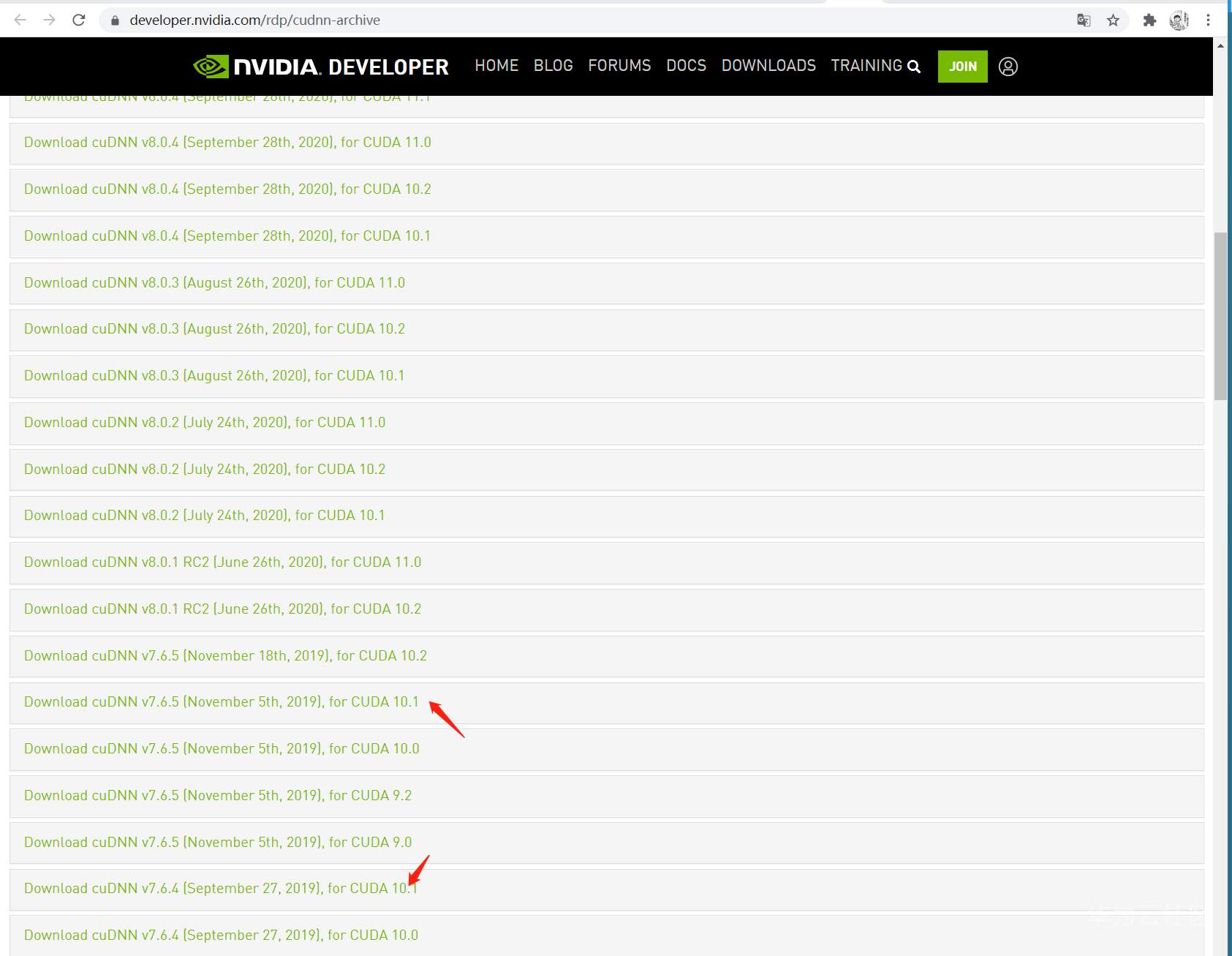 打开 https://developer.nvidia.com/rdp/cudnn-archive
