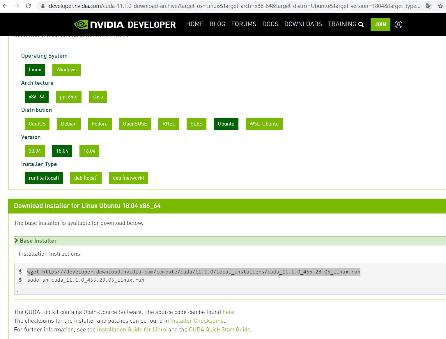 打开:https://developer.nvidia.com/cuda-11.1.0-download-archive