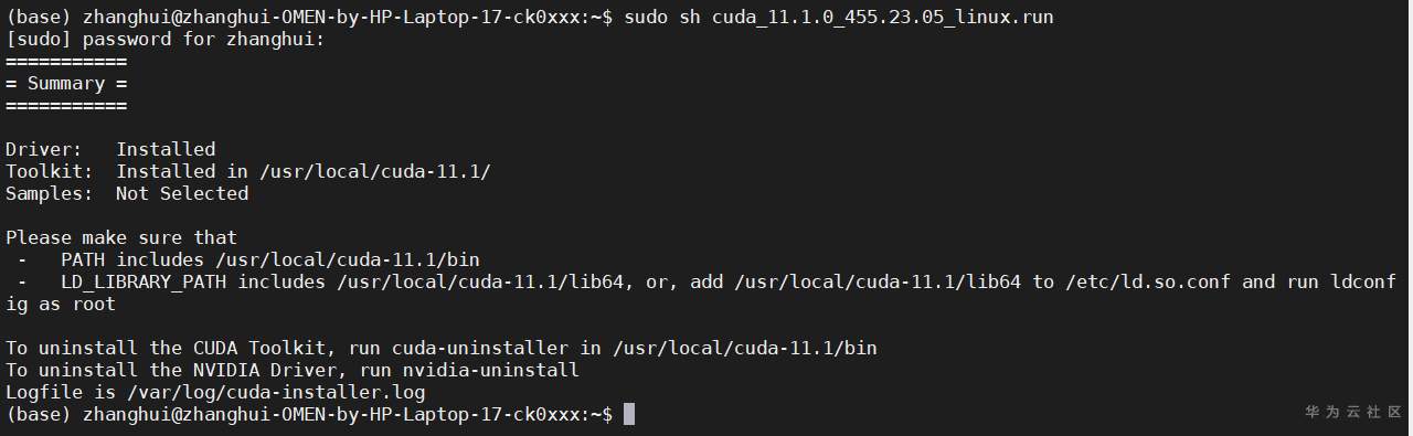 sudo sh cuda_11.1.0_455.23.05_linux.run