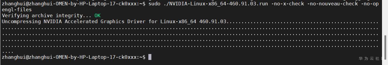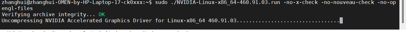 sudo ./NVIDIA-Linux-x86_64-460.91.03.run -no-x-check -no-nouveau-check -no-opengl-files