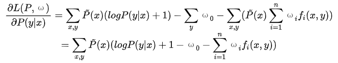 具体地,求L(P,ω)对P(y|x)的偏导数