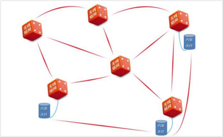 在无线Mesh网络中,采用网状Mesh拓扑结构,是一种多点到多点网络拓扑结构。在这种Mesh网络结构中,各网络节点通过相邻其他网络节点,以无线多跳方式相连。