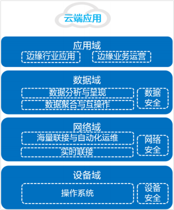 边缘计算的架构分层其实就是将设备和网关中间的这一段内容进行了分层,将原来属于物联网架构中两层的架构进行了细分,分成了四层。在边缘计算架构中,设备域与感知层相同,上面的网络域所指代的是底下的设备到网关之间的这一段网络。同时在往上的数据域指代的就是网关可以像物联网平台一样处理数据,以及向上的应用域指代的就是边缘计算当中的各种应用。