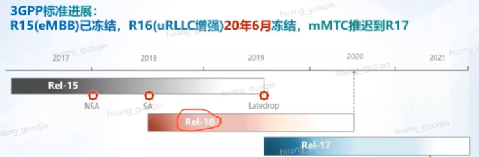 3GPP标准进展:R15(eMBB)已冻结,R16(uRLLC增强)20年6月冻结,mMTC推迟到R17