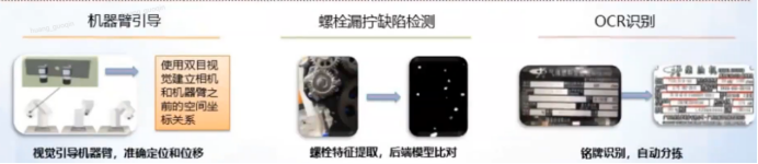 应用场景:机器臂引导、工件螺栓漏拧的缺陷检测、布匹材质缺陷检测、铭牌识别、车牌验证等。