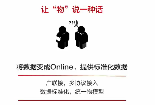 统一所有“物”的语言,这方面也充满挑战,百万种数据元素,缺乏标准和规范,多样化数据格式,各厂商烟囱式发展,数据孤岛林立,数据互通困难。