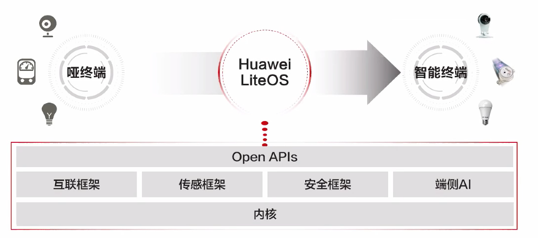 端侧软件让终端更智能的物联网操作系统,哑终端信息通过华为物联网操作系统就会转换成智能终端。物联网操作系统具备轻量级、联接智能、组网智能、管理职能等特性。