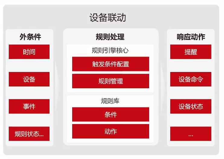 多设备协同,有条件触发,基于预设规则,引发多设备协同反应,比如提醒、告警等。