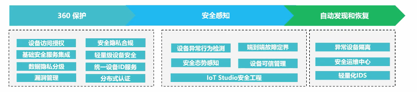 围绕端、管、云构筑领先的IoT安全防护,IoT安全TOP3挑战,涉及设备安全接入、数据安全隐私、安全端边云协同。