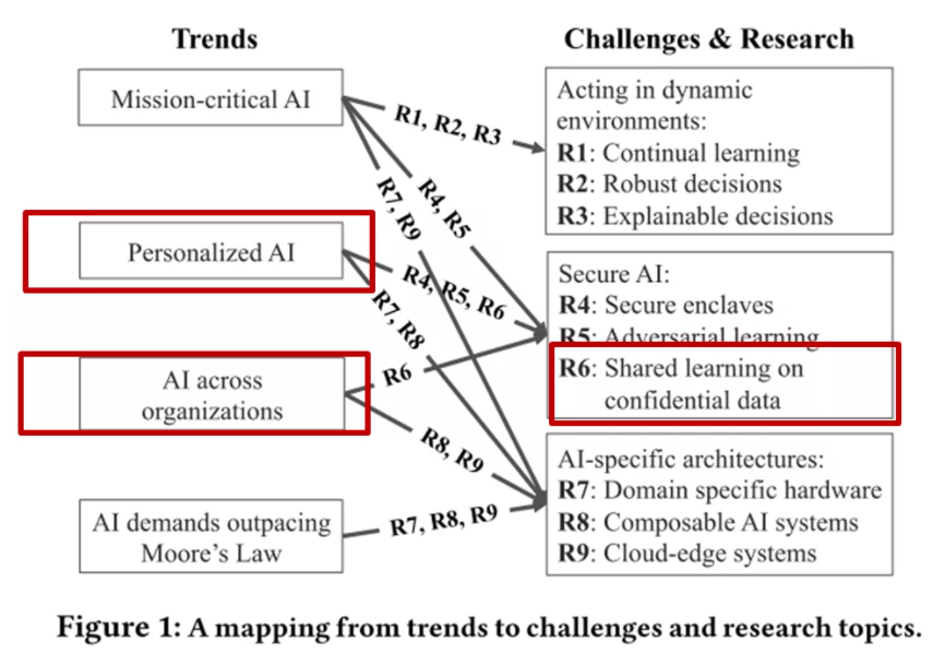 在保密数据上实现共享学习(Shared learning on confidential data)便是九大研究方向之一。而联邦学习的概念,也首次被Google提出,成为了该方向在当前业界最热门的解决方案之一。
