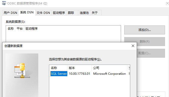 配置时一定要注意odbc版本,window服务器是包含了32位和64位,他们不通用。