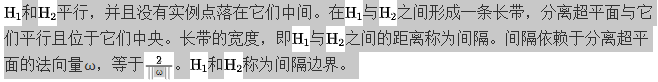 在线性可分情况下,训练数据集的样本点中与分离超平面距离最近的样本点的实例称为支持向量。支持向量是使约束条件式等号成立的点,即