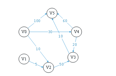 可以解决一个源点到一个或多个终点的问题。如上图所示,假设源点为V0,Dijkstra可以求解从V0到图中一个或多个终点的最短距离或路径。