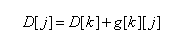 如果 D[k] + g[k][j] < D[j] (Vj不属于集合S)成立,即:当前顶点Vj距离V0的最短距离D[j],在经过以Vk作为中间结点后,距离更短了,则更新D[j]。其中,D[k]代表(V0,Vk)的距离,g[k][j]为(Vk,Vj)的距离,那么D[k]+g[k][j]为(V0,Vj)的距离。