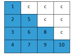 这样的矩阵的存储类似于对称矩阵,如上图所示,只需要存储蓝色部分,然后多分配一个空间存储常数c就可以了,从而可以节省存储空间。