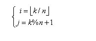 对于矩阵A中的任意元素(i,j),都可以通过公式(1)找到数组B中对应的元素。那么,如果已知元素(i,j)在一维数组中的下标k,如果求矩阵中的元素(i,j)的坐标呢?可以通过如下公式求解: