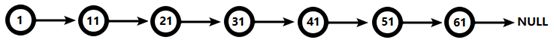 21节点比51节点小,继续向后比较,后面就是NULL了,所以从21节点向下到第1层