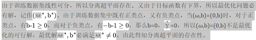 线性可分训练数据集的最大间隔分离超平面是存在且唯一的。