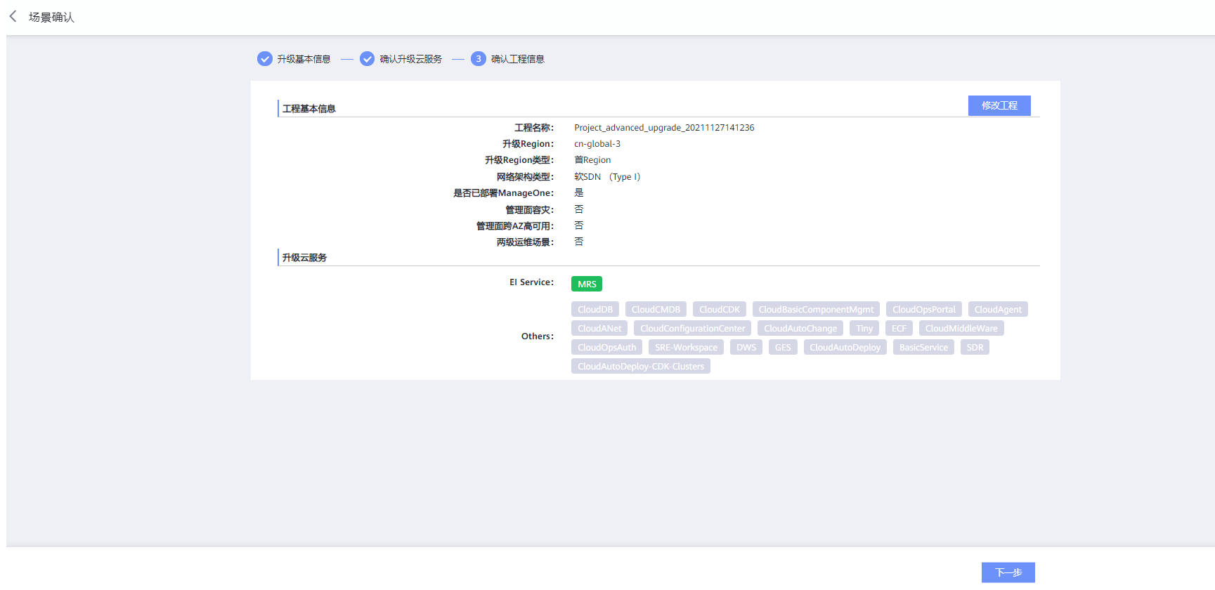 在“确认工程信息”页面,确认信息正确后点击下一步。