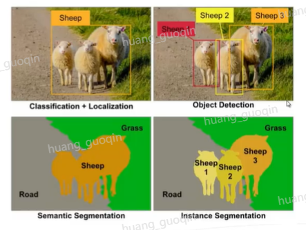 • 分类任务(Classification and localization):检测出对象的位置和类别;不对同类型不同对象做出区别