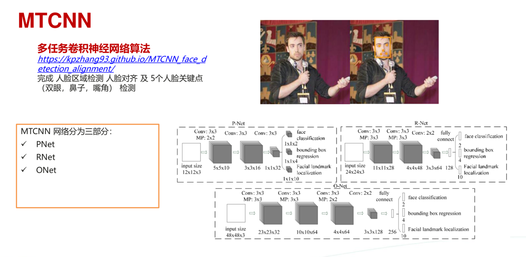 完成人脸区域检测人脸对齐及5个人脸关键点(双眼,鼻子,嘴角)检测